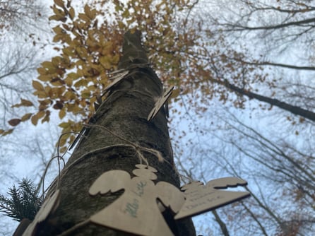 Vor der Rede erhalten die Zeremoniegäste Holzengel und einen Stift, auf die sie der verstorbenen Person noch etwas mit auf den Weg geben können. Diese können Sie dann, nach dem sie an die Beisetzungsstelle getreten sind, am Hanfseil anbringen. Die Holzengel bzw. andere Formen können sich auch bei mir bestellen.